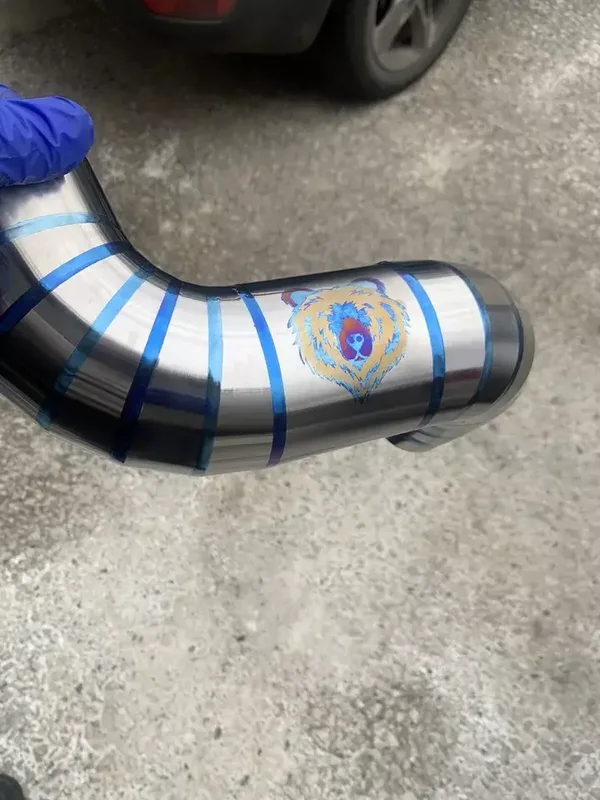 Each piece of titanium hard pipe is hand crafted in the UK and each piece is unique to the buyer.